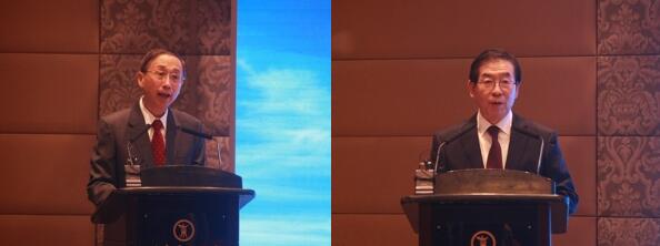会议由王瑞贤副局长主持,杨斌副市长和首尔特别市朴元淳市长出席了会议开幕仪式并致辞。杨斌副市长表示,北京市通过实施清洁空气行动计划,推进京津冀及周边地区大气污染防治联防联控,实现了空气质量持续改善,但北京要持续改善城市环境空气质量依然面临着巨大挑战;北京与首尔在友城合作混委会框架下,在环保领域开展了富有成效的合作,期待两市能够不断深化合作,为两市治理大气污染、应对气候变化提供有力支撑。朴元淳市长表示,非常高兴再次到访北京,与北京市共同讨论生态环境保护领域的议题,作为友好城市,互相学习借鉴并开展更加深入的合作,共同做好两市改善环境空气质量、共同应对气候变化等生态环保工作。