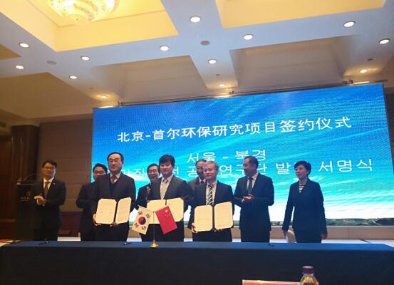 北京和首尔两座城市为交流细颗粒物研究动向等信息、构建紧密合作关系,决定在北京-首尔混合委员会环境组下设改善大气质量联合研究小组,联合研究小组旨在分享大气质量演变趋势分析、细颗粒物等污染物来源解析,扬尘、挥发性有机物等治理技术研发和政策研究。环科院姜林院长、监测中心刘保献副主任、首尔市保健环境研究院丁权院长共同签署北京-首尔改善大气质量联合研究小组工作方案备忘录,承担研究工作,提升生态环境质量,促进深入合作。