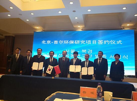 北京和首尔两座城市为交流细颗粒物研究动向等信息、构建紧密合作关系,决定在北京-首尔混合委员会环境组下设改善大气质量联合研究小组,联合研究小组旨在分享大气质量演变趋势分析、细颗粒物等污染物来源解析,扬尘、挥发性有机物等治理技术研发和政策研究。环科院姜林院长、监测中心刘保献副主任、首尔市保健环境研究院丁权院长共同签署北京-首尔改善大气质量联合研究小组工作方案备忘录,承担研究工作,提升生态环境质量,促进深入合作。