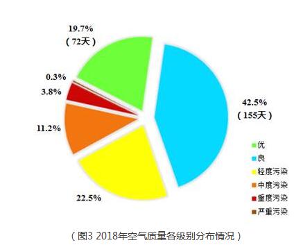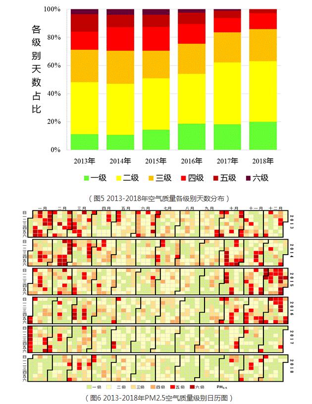 2018年“蓝天”含金量进一步提高,空气质量呈现“优增劣减”特征,一级天同比增加6天,重污染日同比减少9天。近六年来重污染日持续减少,2018年全年首次无持续3天及以上的重污染过程。
