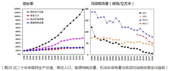 1998年以来,北京市在经济社会快速发展的同时,长期监测的主要污染物浓度均呈现持续下降特征,体现出我市大气污染治理成效。