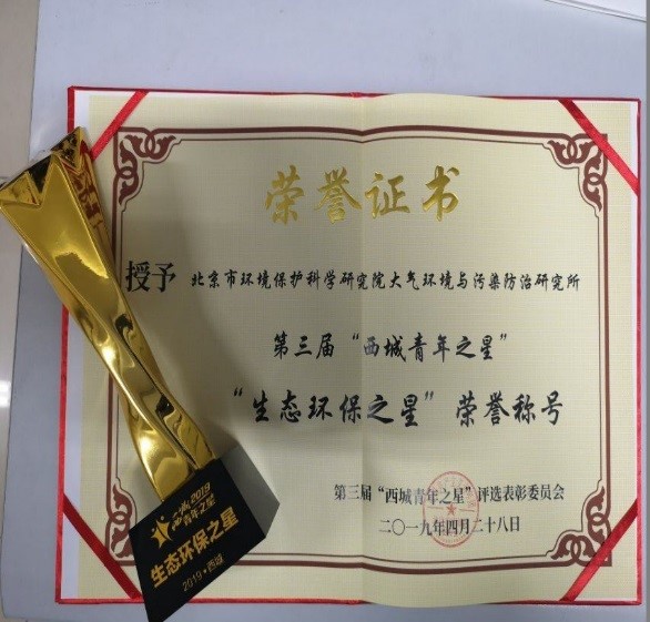 市环科院大气所在西城区团委组织开展的第三届“西城青年之星”评选活动中,荣获“生态环保之星”荣誉称号