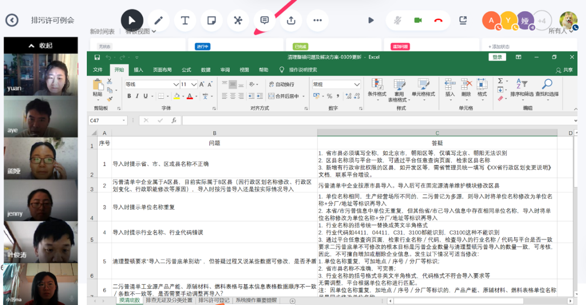 总结工作成果,编写答疑手册。技术组梳理了各区提出的疑问,根据生态环境部的官方解答,编制了排污许可答疑手册,并在微信群中定期发布,提升了各区工作效率。