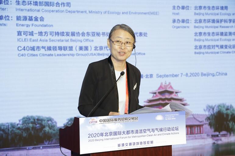 论坛首日的主题为“能源交通领域协同控制”,韩国首尔市长郑秀镛、美国加州空气质量资源局主席玛丽·尼克尔斯、法国巴黎大区空气监测中心主任卡琳·勒格尔、意大利伦巴第大区政府空气质量管理部门主任马特•兰扎里尼、英国大伦敦政府空气质量组高级政策与项目官员马修•布朗宁、北京市生态环境局大气处处长李翔、科技国际处(应对气候变化处)处长明登历分别分享了各自城市近年来在大气污染治理和应对气候变化领域的行动与成效、政策与规划。清华大学原常务副校长何建坤教授对疫情后能源经济低碳转型的形势进行了深入的分析,并提出了加强应对气候变化制度建设和行为规范、加强新能源技术创新和产业化发展等改善对策。北京市环境保护科学研究院院长姜林从扬尘监管、VOCs污染防治、NOx污染防治、大气氮排放控制等方面详细介绍了北京市环境保护科学研究院在大气污染防治精细化管控对策方面的研究与实践。北京冬奥组委总体策划部可持续发展处处长刘新平分享了在“绿色办奥”理念下,北京积极践行低碳管理、场馆可持续管理的工作机制,通过“建设绿色场馆、应用绿色能源、推广绿色交通、推行绿色生活”的方式开展绿色冬奥行动。