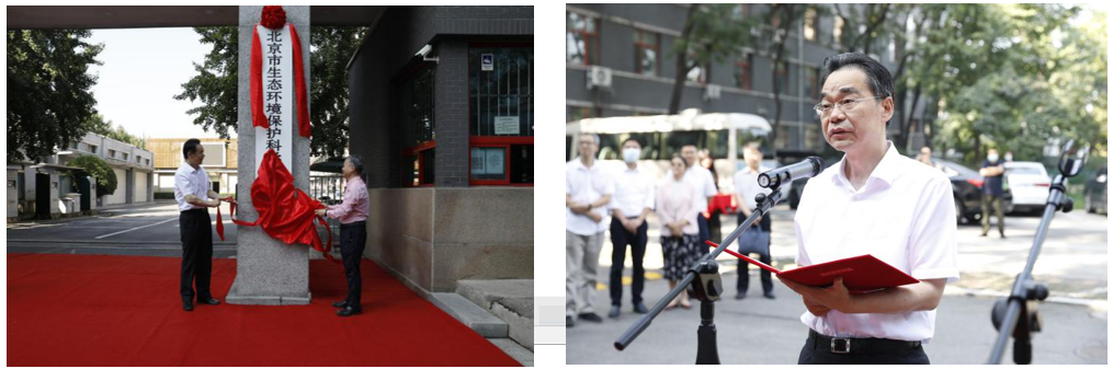 2021年9月10日,艳阳高照,晴空万里,北京市生态环境保护科学研究院更名揭牌仪式在洋溢着欢乐的气氛中举行。局党组书记、局长陈添同志和姜林院长共同为环科院揭牌。姜林院长主持揭牌仪式。