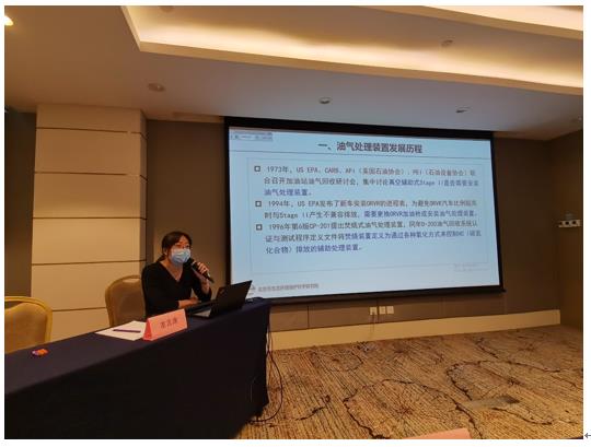 北京市环科院胡玮助理研究员作了题为《加油站油气处理装置作用及VOCs排放分析》的报告。报告阐述了加油站油气处理装置的作用以及我国对于油气处理装置的认识误区,分析北京市油气处理装置VOCs排放现状,明确了加油站国标对油气回收处理装置的要求。