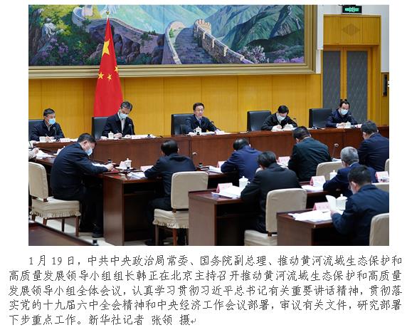 新华社北京1月20日电(记者 齐中熙)中共中央政治局常委、国务院副总理、推动黄河流域生态保护和高质量发展领导小组组长韩正19日在北京主持召开推动黄河流域生态保护和高质量发展领导小组全体会议,认真学习贯彻习近平总书记有关重要讲话精神,贯彻落实党的十九届六中全会精神和中央经济工作会议部署,审议有关文件,研究部署下步重点工作。