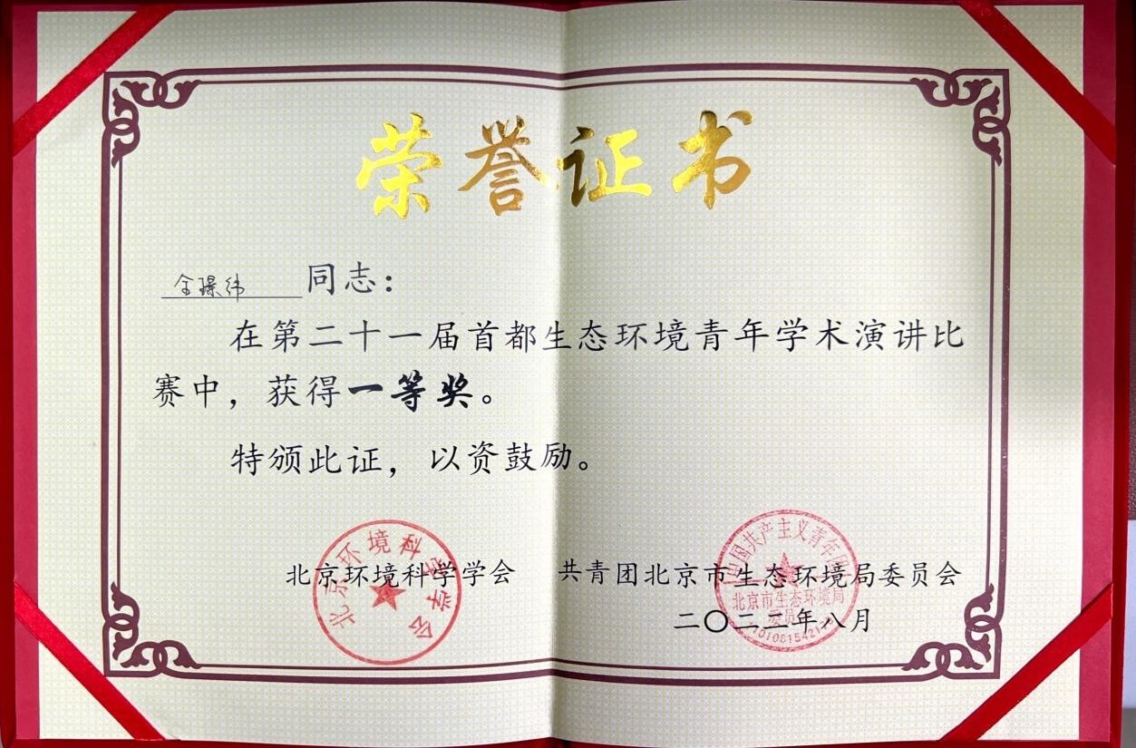 北京环境科学学会、共青团北京市生态环境局委员会于2022年8月24日举办了“第二十一届首都生态环境青年学术演讲比赛”,环科院生态所全璟纬在比赛过程中以沉着冷静地发挥、动人心弦的演说在参赛选手中脱颖而出,获得本次演讲比赛一等奖。