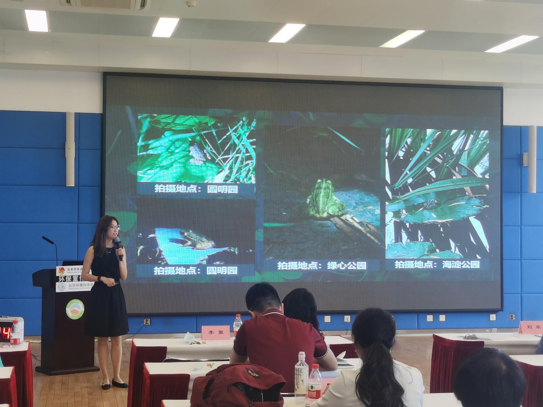 全璟纬是一名年轻的生态环境保护工作者,正在参与北京市生物多样性调查工作,主要负责两栖类和爬行动物类的实地调查工作。在本次演讲比赛中,她从自身实际工作出发,以“北京寻蛙记”为主题,向大家生动展示了她参与的蛙类调查工作。凭借长时间参与蛙类白天和夜间调查的丰富经验与拍摄到的真实影像,将北京市的蛙类多样性保护工作娓娓道来,同时呼吁大家关注蛙类生存环境和城市的生物多样性。全璟纬依托扎实的野外调查经验,用丰富生动的语言,向大家展示了首都青年服务北京建设的能力与风采。