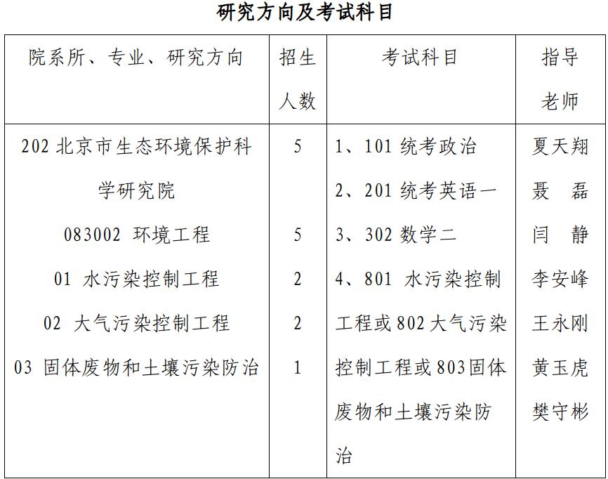 我院现在面向全国招收全日制学术型研究生,学制三年,培养类别为非定向培养,经费渠道公费,招生专业为环境工程,专业代码为083002,招收调剂专业为环境工程。
