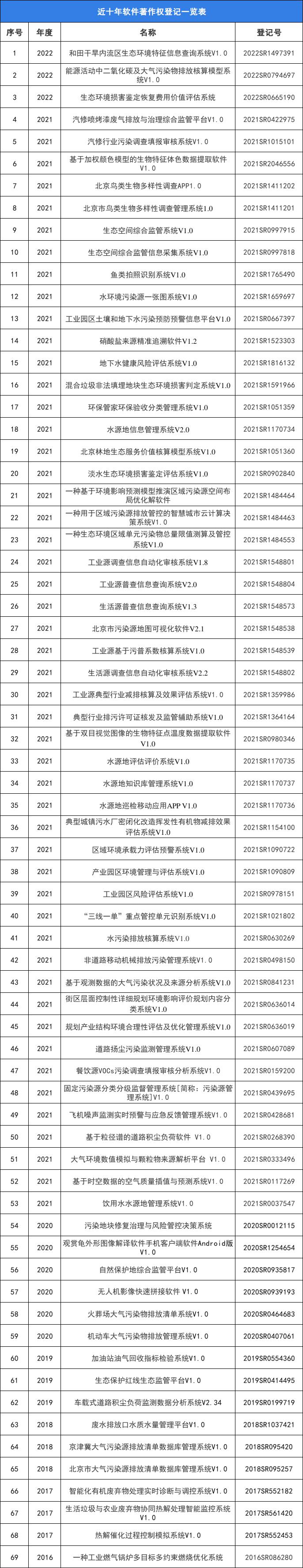 截至2022年,北京市生态环境保护科学研究院近十年获得专利授权171项,软件著作权69项。